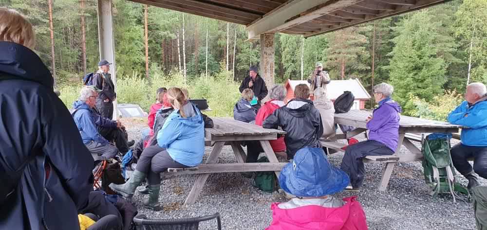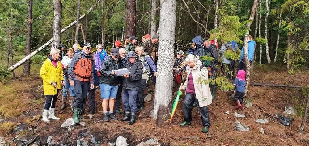 Etter foredraget til Eiiv Ulltveit Moe, letta regnværet og det blei tur innom Grasåsgruva som ligg rett ved skytebanen. Deretter gjekk turen til Fjellsgruva . Langs skogsvegen var det lagt opp ein historisk natursti for vaksne og natursti for barn. Vi fekk ei lita orientering ved «vannkonsta» før vi enda opp ved Fjellsgruva. Alle som ønska det fekk komme inn i gruva. Deretter blei det matpause, god prat og gjennomgang av naturstispørsmåla. Sjøl om været ikkje var det beste i starten, vart det ein vellukka høsttur.